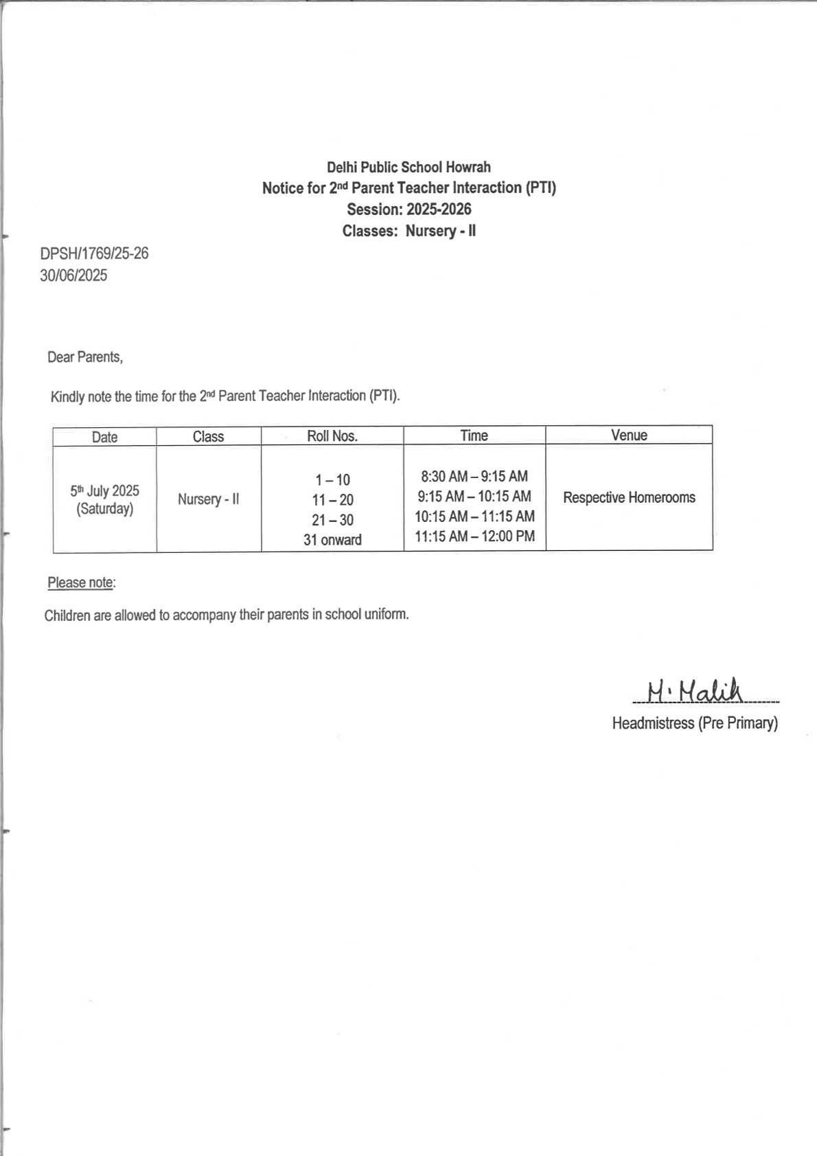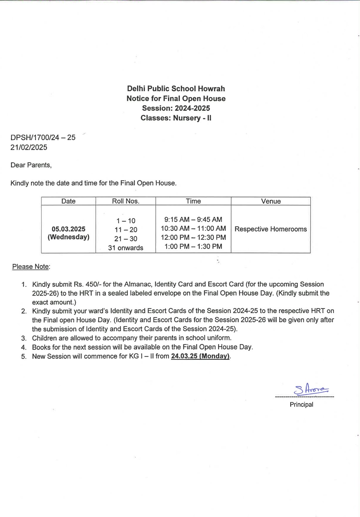 Notice 738 – Important Session End Dates for Preprimary Dept. (NUR – II)