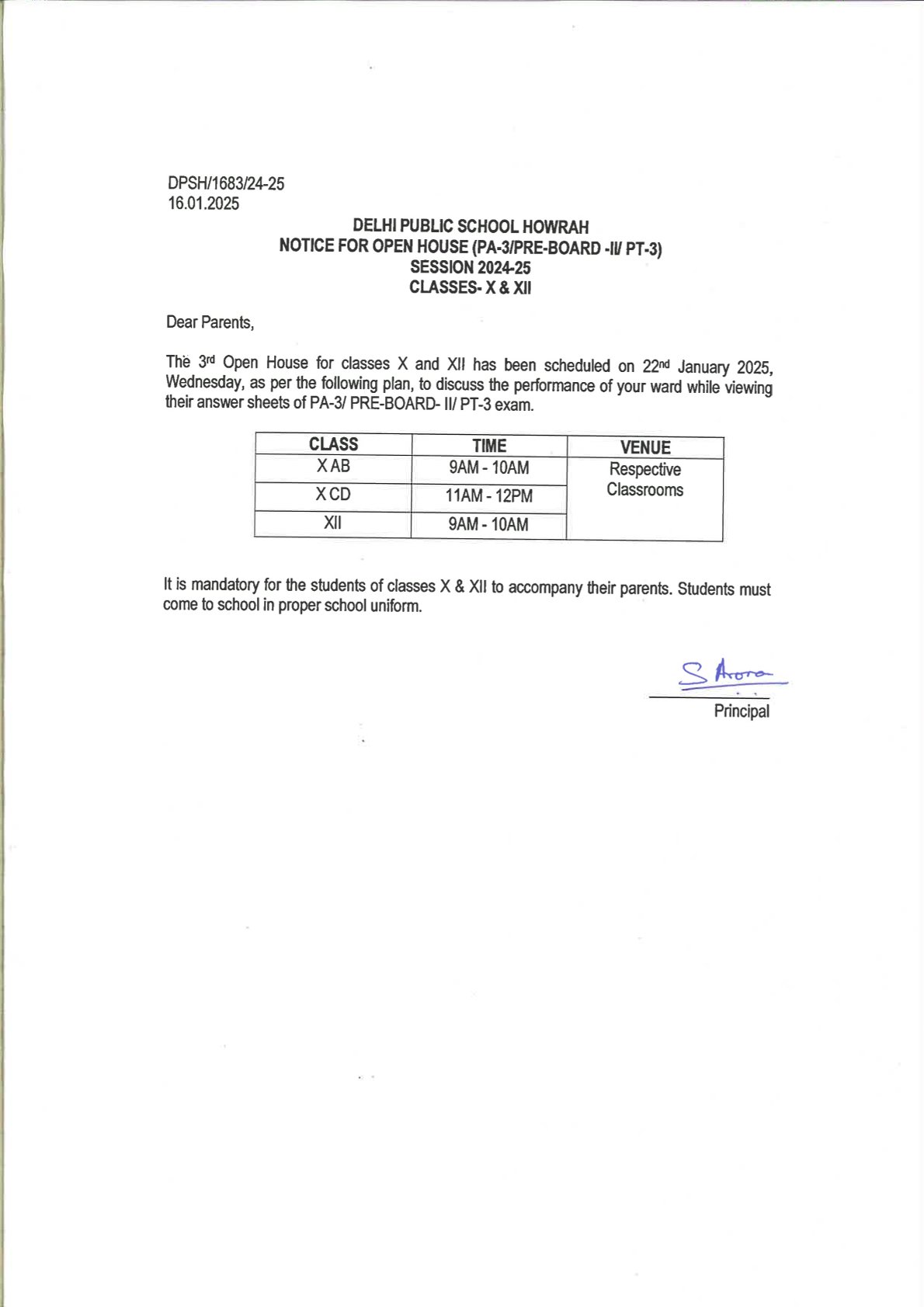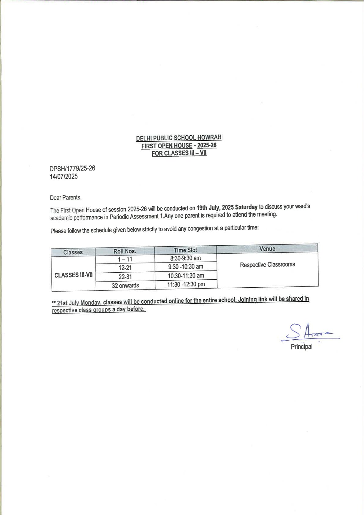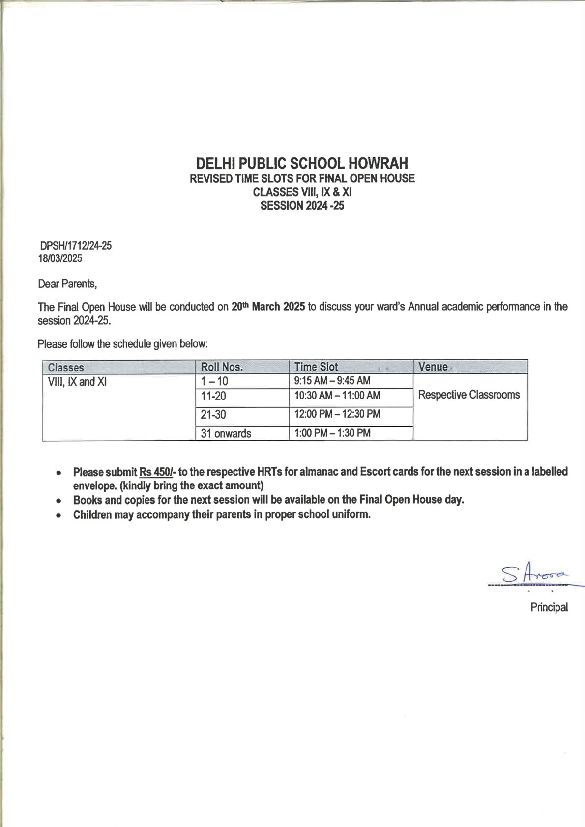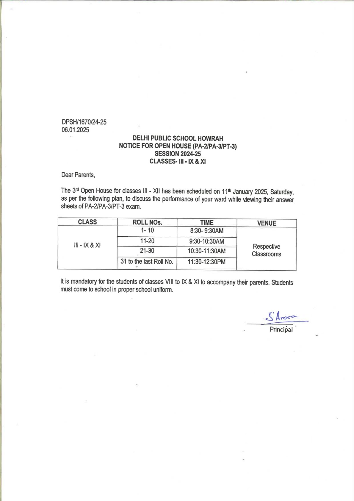 OPEN HOUSE NOTICE Classes III-IX & XI